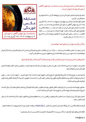 نتایج و عکس‌های برتر مطابق پیوست اعلام شده است اعضای محترم انجمن خوردگی ایران، پژوهشگران، دانشجویان و صنعتگران گرامی: همان گونه كه مستحضرید چهارم اردیبهشت 1404 (24 آوریل 2025) روز جهانی آگاهی از خوردگی نامگذاری شده است. به این مناسبت انجمن خوردگی ایران در نظر دارد مسابقه عکاسی با موضوع خوردگی برگزار نماید. جهت شرکت دراین مسابقه کافیست تصاویر خوردگی و داده‌های مربوط به آن را تا تاریخ 1404/02/10 (10 اردیبهشت ماه 1404) ارسال نمایید. به آثار برگزیده جوایز ارزندهای اهدا خواهد شد. ضمن دعوت از تمامی علاقمندان به مشاركت در این فعالیت علمی و فرهنگی و ضمن احترام و اطمینان به شما گرامیان خواهشمند است مورد زیر برای حفظ امانتداری و حقوق سایرین مدنظر قرار گیرد: عکس‌های ارسالی می‌بایست تجربه شخصی افراد بوده و اصالت آنان حتما در نظر گرفته شود. تمامی مسئولیت درستی و اصالت تصاویر ارسالی بر عهده ارسال كننده بوده و مسئولیتی به هر شكل متوجه انجمن خوردگی ایران نخواهد بود. محدودیتی در نوع و تعداد عکس‌ها،موضوع، تاریخ و محل، تجهیز خورده شده، علت خوردگی و.... وجود ندارد. تصاویر ارسالی می‌تواند شامل پدیده‌های ماكروسكوپی و صنعتی، خوردگی در تاسیسات شهری، تجربیات آزمایشگاهی و تصاویر میكروسكپی و غیره باشد. تصاویر تهیه شده بایستی دارای كیفیت قابل قبولی بوده و علاوه بر نام و نام خانوادگی و شماره تلفن همراه ارسال كننده، تاریخ (حدودی) و محل تهیه عكس، و نوع و علت خوردگی نیز قید گردد.. انجمن خوردگی ایران مجاز است تمامی عکس‌های دریافتی را در رسانه‌های مجازی و مكتوب خود با ذكر مشخصات ارسال كننده قرار دهد. فرم مسابقه عکاسی را از پایگاه اینترنتی انجمن به نشانی www.ica.ir دریافت نمایید و یا از فرم پیوست استفاده شود. لطفا عکس‌های خود (فرم) را به آدرس پست الکترونیک انجمن به نشانی زیر ارسال بفرمایید: info@ica.ir